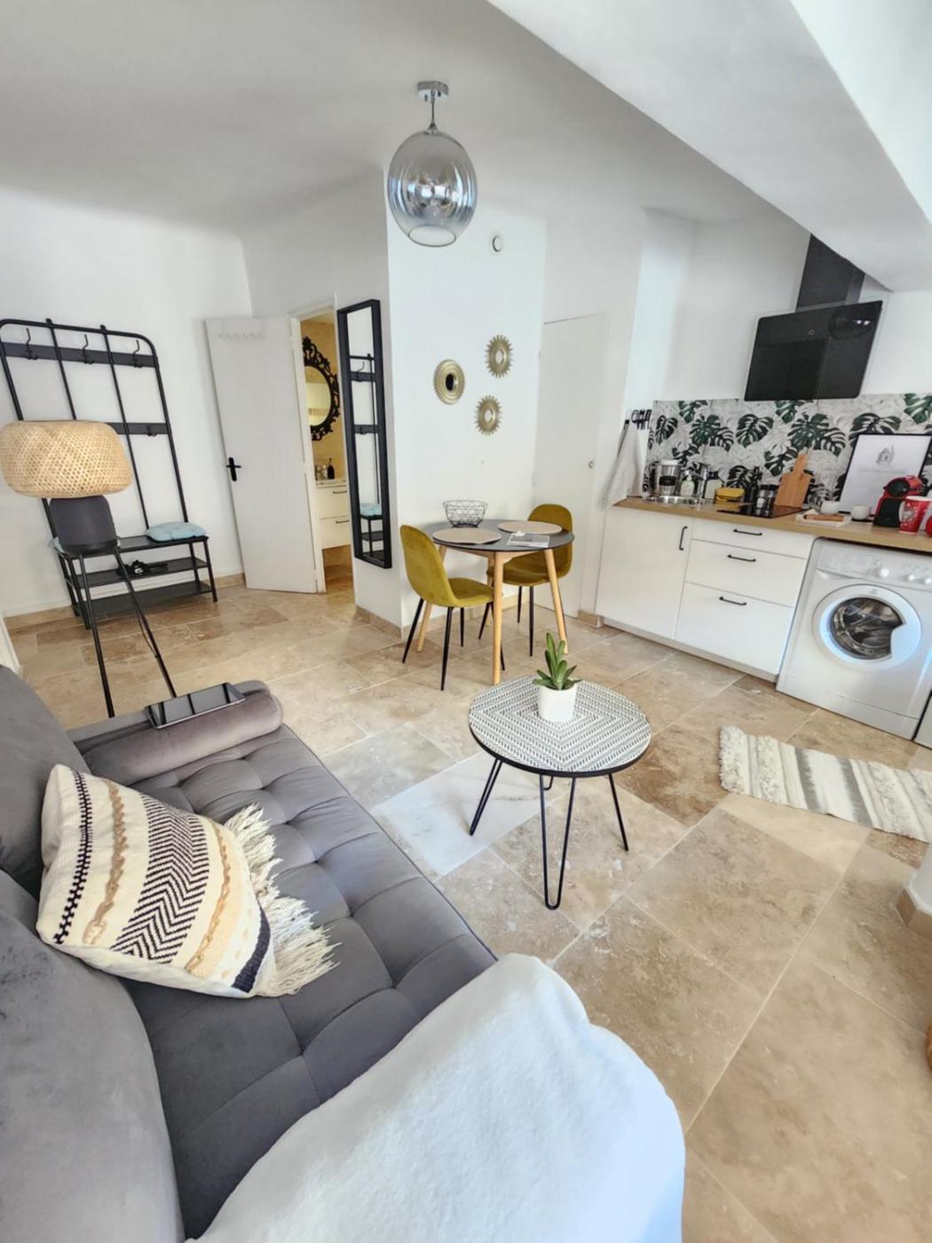Appartement 1 Chambre. The air-conditioned apartment has 1 bedroom and 1 bathroom with a shower and a hairdryer. Guests can make meals in the kitchen that has a stovetop, a refrigerator, a microwave and a toaster. The apartment is furnished with a desk and a seating area and features a washing machine, a coffee machine and city views. The unit has 1 bed.