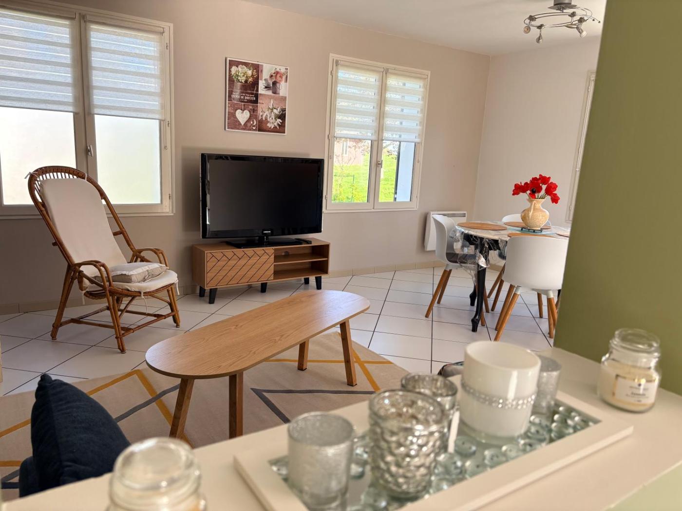 Maison 2 Chambres. Featuring a private entrance, this air-conditioned holiday home comprises 1 living room, 2 separate bedrooms and 1 bathroom with a shower. Meals can be prepared in the kitchen, which comes with a stovetop, a refrigerator, a dishwasher and kitchenware. Boasting a terrace with garden views, this holiday home also provides a washing machine and a flat-screen TV. The unit offers 2 beds.