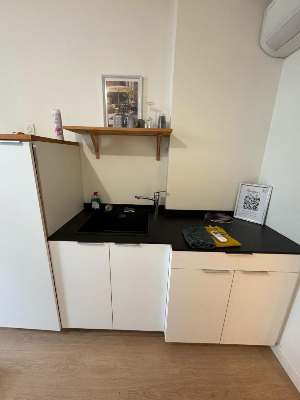 Studio. The studio features air conditioning, a tea and coffee maker, as well as a private bathroom boasting a shower and a hairdryer. A kitchen fitted with a refrigerator, kitchenware and a microwave is available for cooking and storing food. This studio provides heating and a TV with satellite channels.