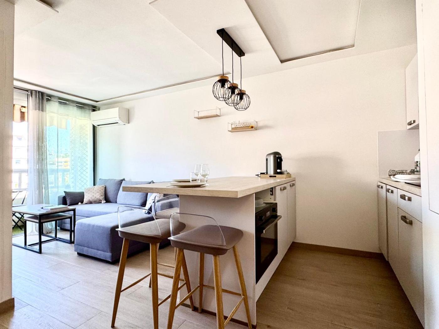 Cet appartement avec climatisation se compose de 1 chambre, dun salon, dune cuisine entièrement équipée avec un réfrigérateur et une machine à café, ainsi que de 1 salle de bains avec une douche. Des serviettes et du linge de lit sont disponibles.