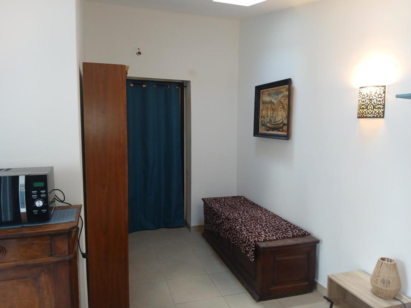 Chambre Double. Cette chambre double climatisée comprend une salle de bains privative, un plateaubouilloire, une armoire et une terrasse. Le logement comporte 1 lit.