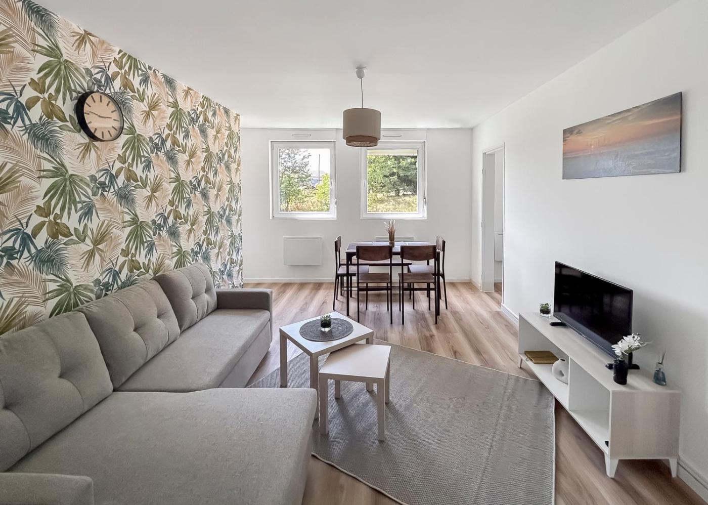 Appartement 2 Chambres. This apartment comes with 1 living room, 2 separate bedrooms and 1 bathroom with a shower and a hairdryer. The well-fitted kitchen has a stovetop, a refrigerator, kitchenware and an oven. The apartment features a washing machine, a tea and coffee maker, a seating area, a dining area and a flat-screen TV with cable channels. The unit has 4 beds.
