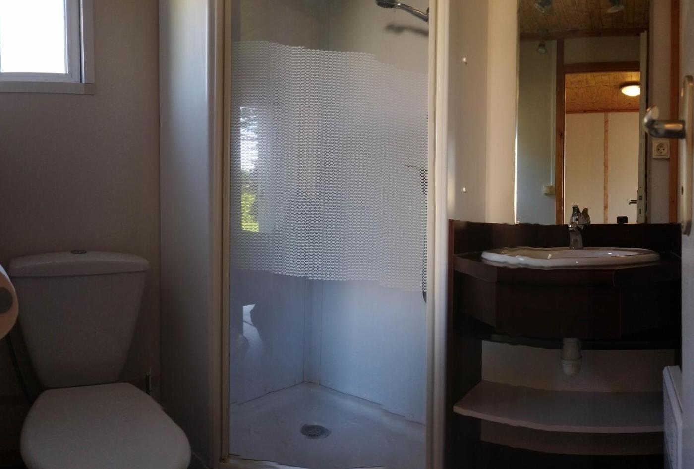 Mobile Home. Boasting a private entrance, this mobile home also includes 1 living room, 2 separate bedrooms and 2 bathrooms with a shower. The fully equipped kitchen has a stovetop, kitchenware, a microwave and a toaster. A seating area with a flat-screen TV, a coffee machine and an outdoor dining area are offered in this mobile home. The unit has 4 beds.
