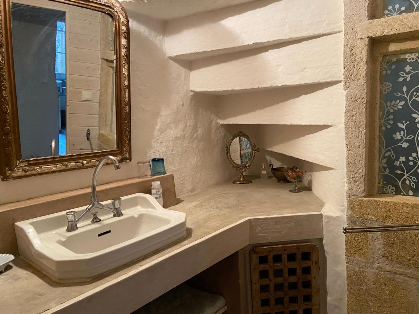 Chambre Double avec Salle de Bains Commune. Featuring free toiletries, this double room includes a shared bathroom with a walk-in shower, a bidet and a hairdryer. Meals can be prepared in the kitchenette, which has a stovetop, a refrigerator, kitchenware and an oven. There is a private entrance, a tea and coffee maker and a patio and complimentary winechampagne is available for guests. The unit has 1 bed.