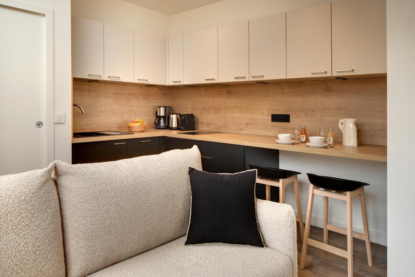Studio - MADELOC. The studio has a private bathroom, air conditioning, a coffee machine, as well as a seating area with a flat-screen TV. Meals can be prepared in the kitchen, which features a stovetop, a refrigerator, a dishwasher and kitchenware. The studio features a wardrobe, a safe deposit box, a sofa, a TV, as well as a quiet street view. The unit has 1 bed. ;