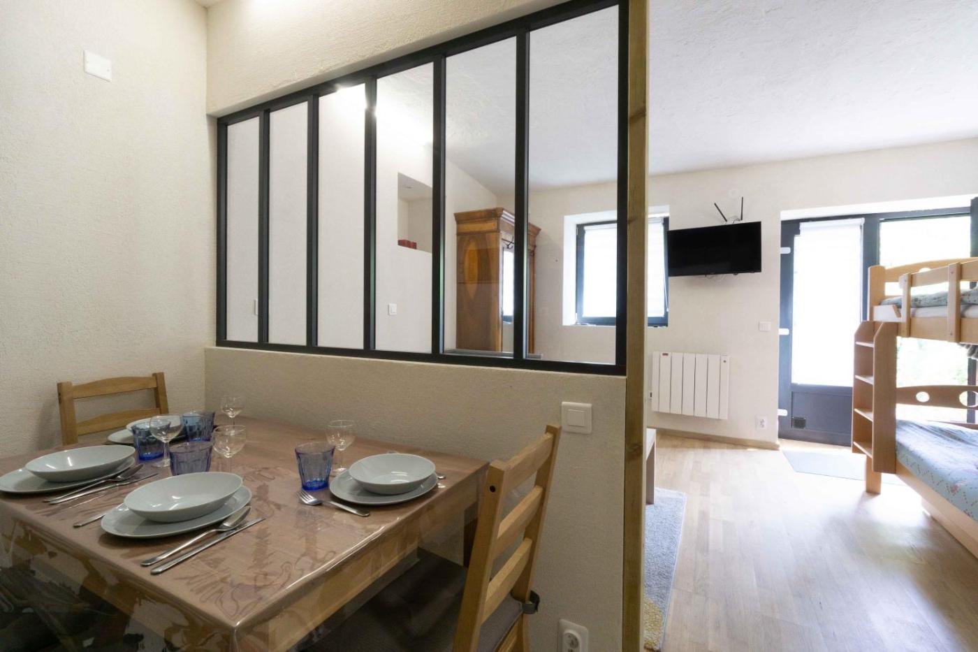 Studio - Vue sur Montagne. The well-fitted kitchen features kitchenware, an oven, a microwave and an electric kettle. Featuring a balcony with mountain views, this studio also provides a washing machine and a TV. The unit offers 2 beds.