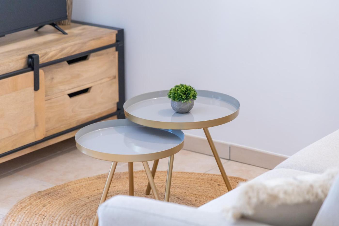 Appartement 1 Chambre - Vue sur Jardin. This apartment comprises 1 living room, 1 separate bedroom and 1 bathroom with a shower and free toiletries. Meals can be prepared in the kitchen, which comes with a dishwasher, kitchenware, an oven and a microwave. The apartment provides air conditioning, a washing machine, a coffee machine, a TV with streaming services, as well as garden views. The unit offers 2 beds.