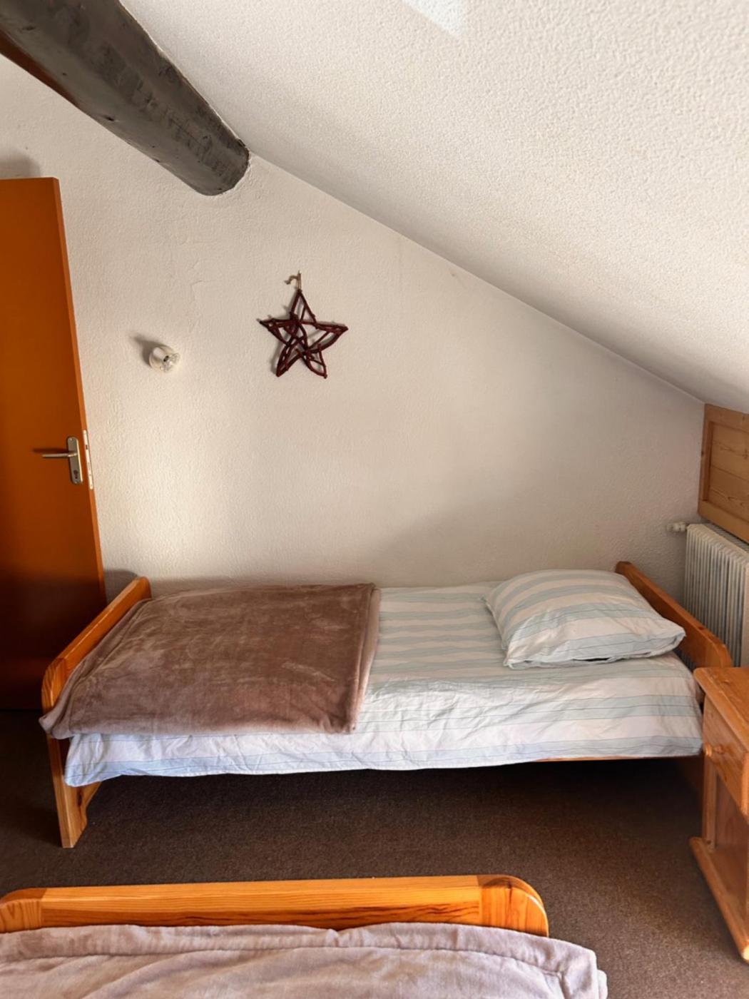 Chambre Triple. The triple room provides a wardrobe, a carpeted floor, as well as a shared bathroom featuring a hairdryer. The triple room features heating. The unit offers 2 beds. ;