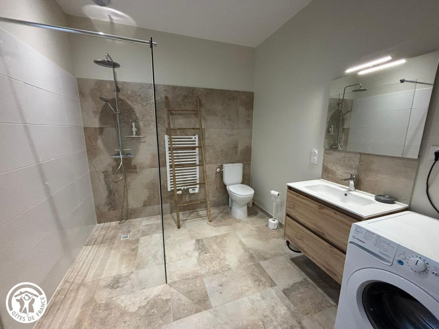 Maison de Vacances. This holiday home comprises 1 bedroom, kitchen, a terrace and 2 bathrooms with a shower. In the well-equipped kitchen, guests will find a refrigerator, a dishwasher, kitchenware and an oven. The holiday home provides a TV, a washing machine, a private entrance, a dining area as well as garden views.