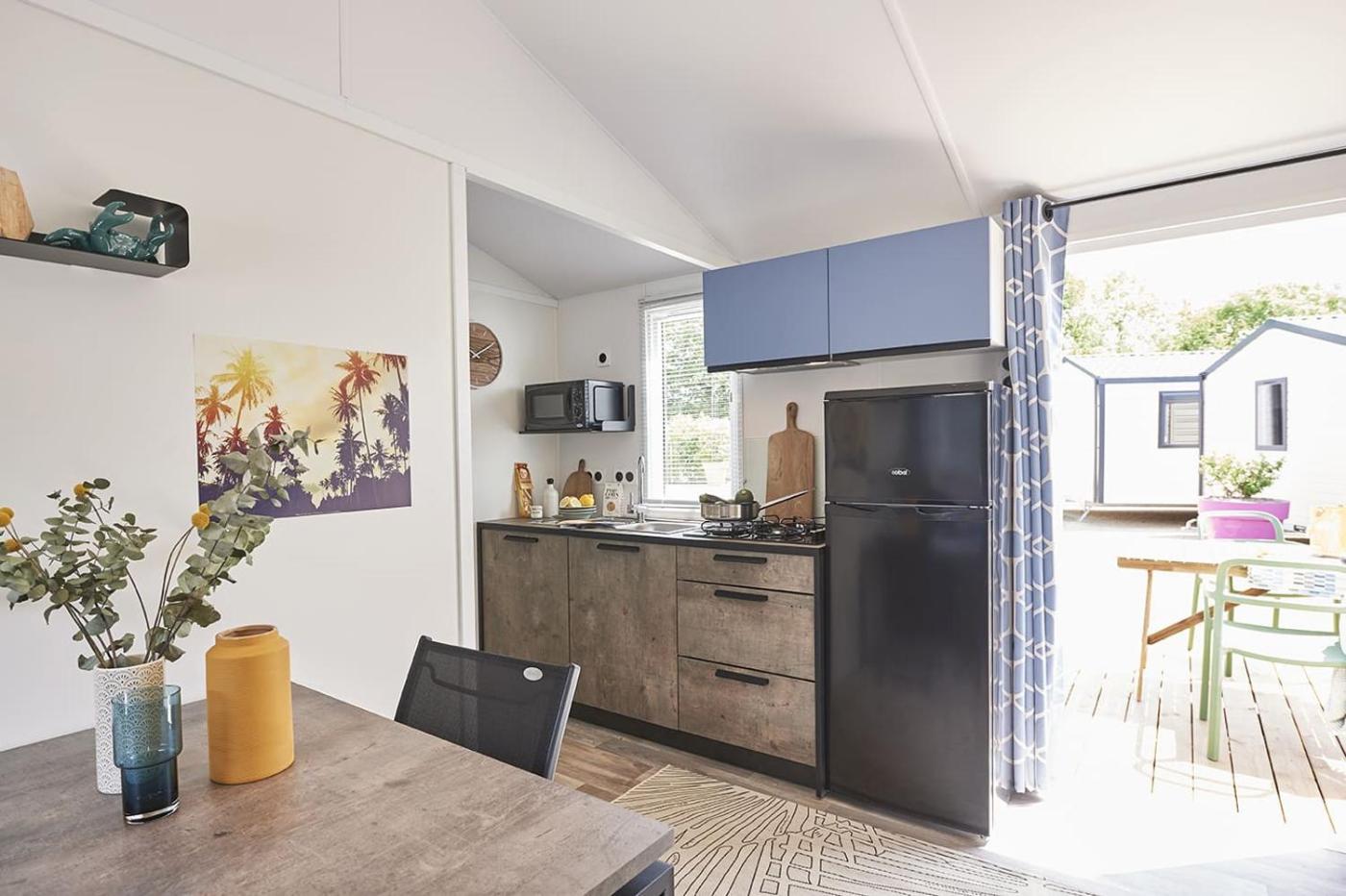 Mobile Home. This mobile home features a infinity pool. This mobile home features 1 living room, 2 separate bedrooms and 1 bathroom with a shower. The well-equipped kitchenette has a stovetop, a refrigerator, kitchenware and a microwave. A seating area with a flat-screen TV, a coffee machine and a terrace are offered in this mobile home. The unit has 3 beds. ;