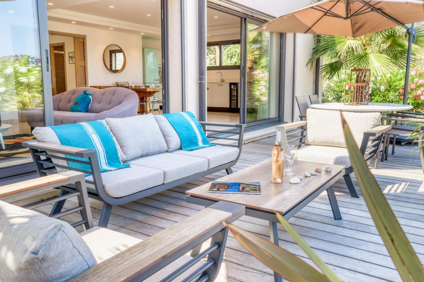 Vous séjournerez à respectivement 25 km et 25 km de ces lieux d’intérêt : Chateau de Grimaud et Le Pont des Fées. Laéroport le plus proche (Aéroport de Toulon - Hyères) est à 30 km.