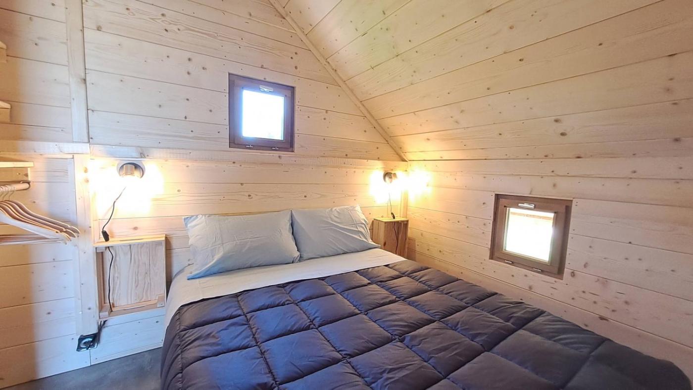 Chalet 1 Chambre. This chalet comprises 1 living room, 1 separate bedroom and 1 bathroom with a shower and free toiletries. Meals can be prepared in the kitchen, which is equipped with a stovetop, a refrigerator, kitchenware and a microwave. The chalet provides a washing machine, a coffee machine, a seating area as well as a terrace with garden views. The unit offers 1 bed. ;