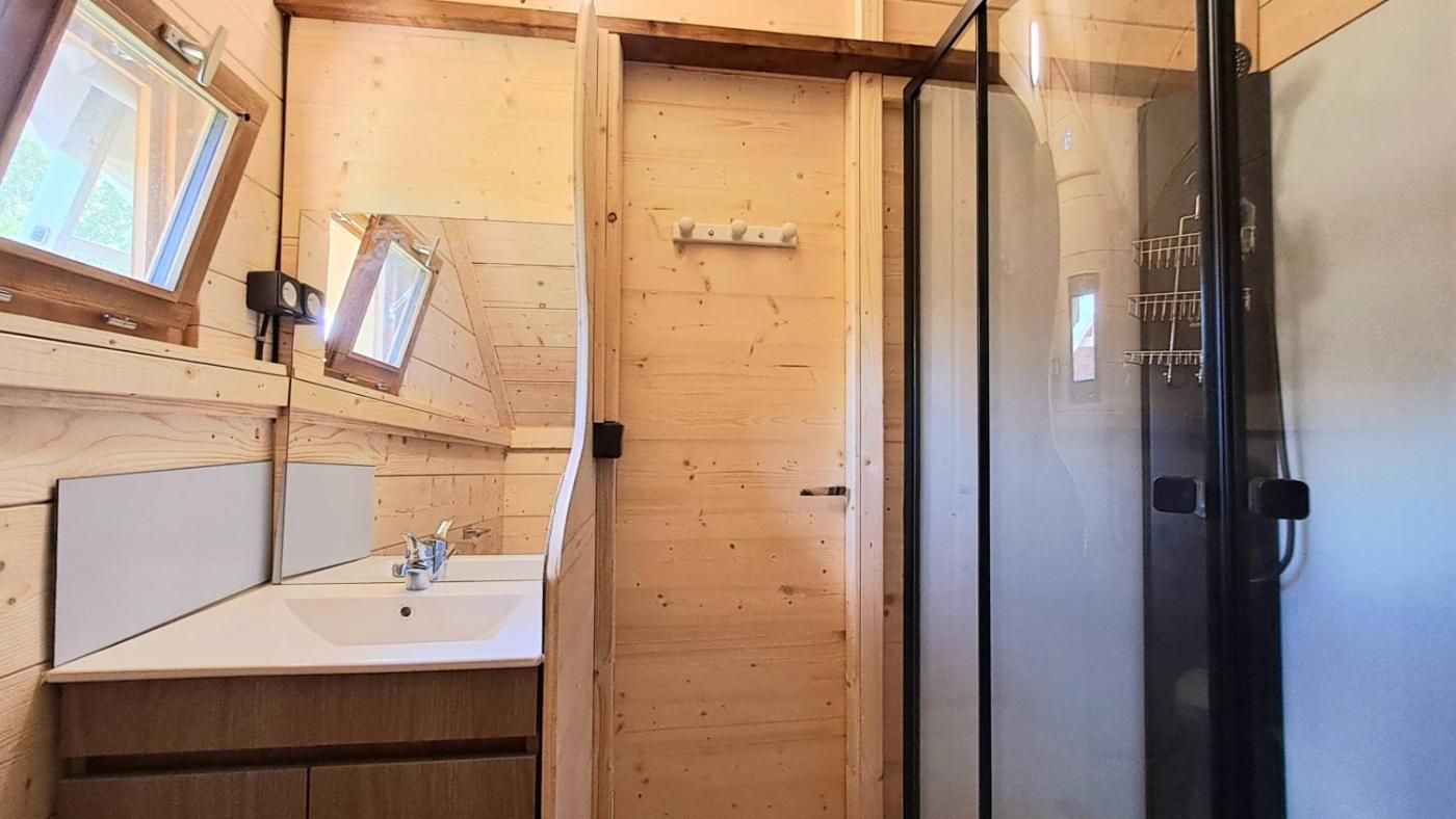 Chalet 1 Chambre. This chalet comprises 1 living room, 1 separate bedroom and 1 bathroom with a shower and free toiletries. Meals can be prepared in the kitchen, which comes with a stovetop, a refrigerator, kitchenware and a microwave. The chalet provides a washing machine, a coffee machine, a seating area as well as a terrace with garden views. The unit offers 1 bed.