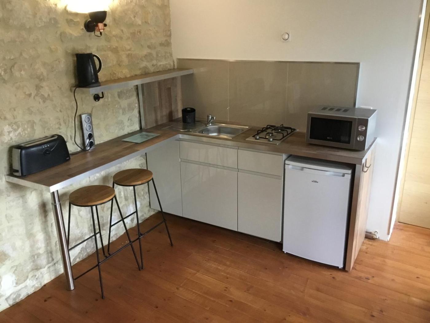 Maison 1 Chambre. This holiday homes standout feature is the fireplace. Boasting a private entrance, this holiday home also includes 1 living room, 1 separate bedroom and 1 bathroom with a shower. Guests can make meals in the kitchenette that has a refrigerator, kitchenware, an oven and a microwave. The holiday home has parquet floors, a seating area with a flat-screen TV, a coffee machine, a dining area as well as ancourtyard view. The unit has 2 beds.