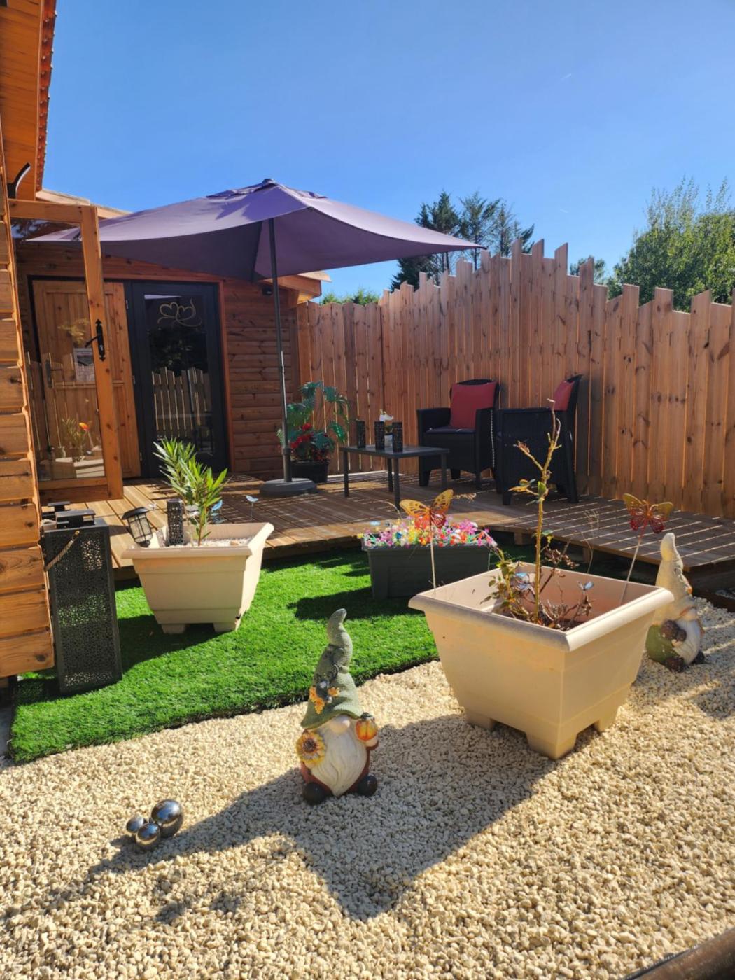 Ce chalet comporte 1 chambre, une kitchenette avec un réfrigérateur et un micro-ondes, ainsi que 1 salle de bains avec une douche et un bain à remous. Une télévision à écran plat est à disposition.