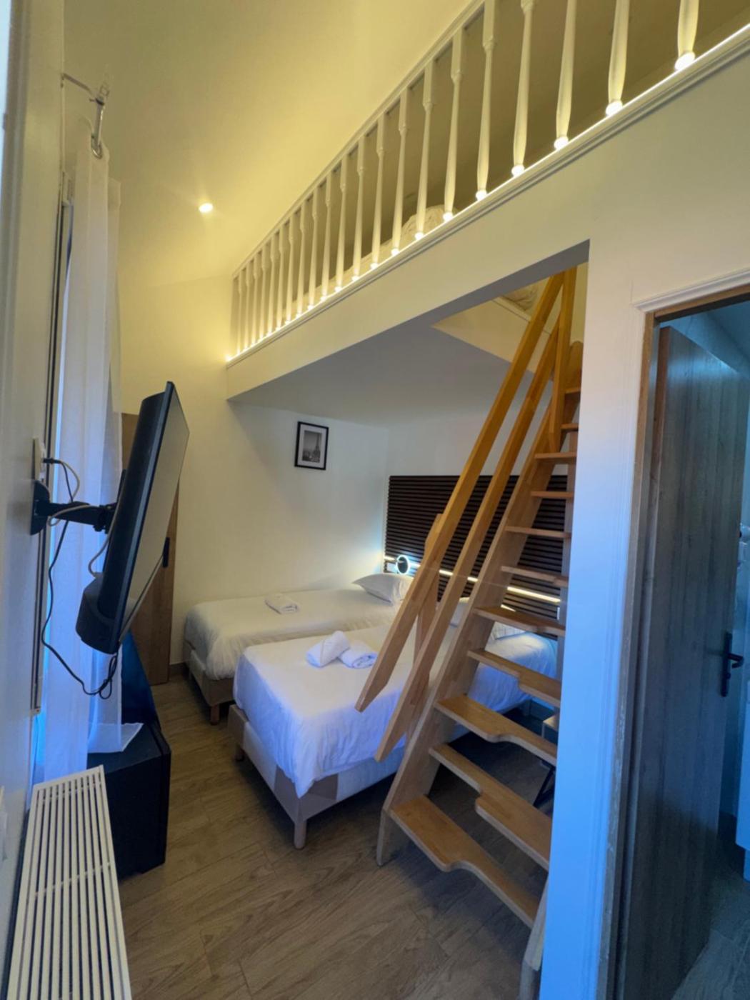 Chambre Quadruple avec Baignoire. Cette chambre quadruple climatisée et insonorisée possède une salle de bains privative pourvue dune baignoire et dune douche. Cette chambre quadruple avec vue sur une cour intérieure est dotée d’une télévision à écran plat, d’une armoire, d’un coffre-fort et d’une bouilloire électrique. Ce logement comporte 2 lits. ;