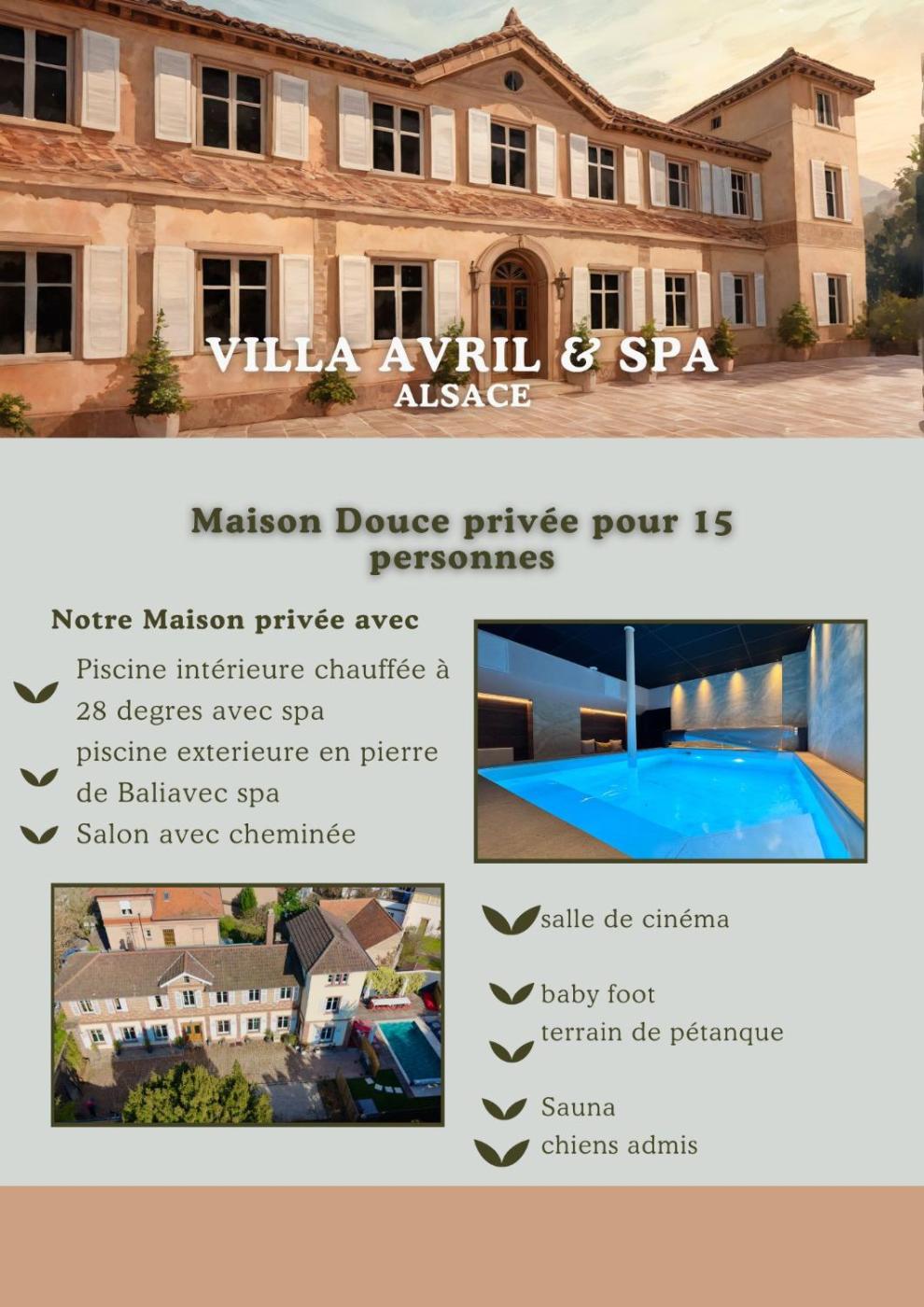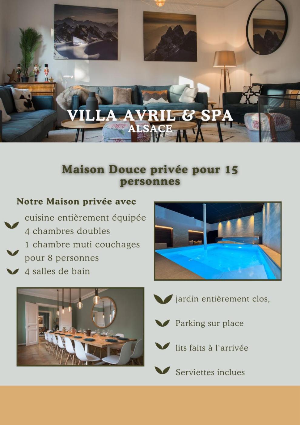 Informations complémentaires sur l´offre fr - Sélestat - Villa Avril et Spa Gîte de luxe 15 personnes avec piscine chauffée toute lannée, les avis des vacanciers ainsi que les dates disponibles sont à retrouver sur le site notre associé.