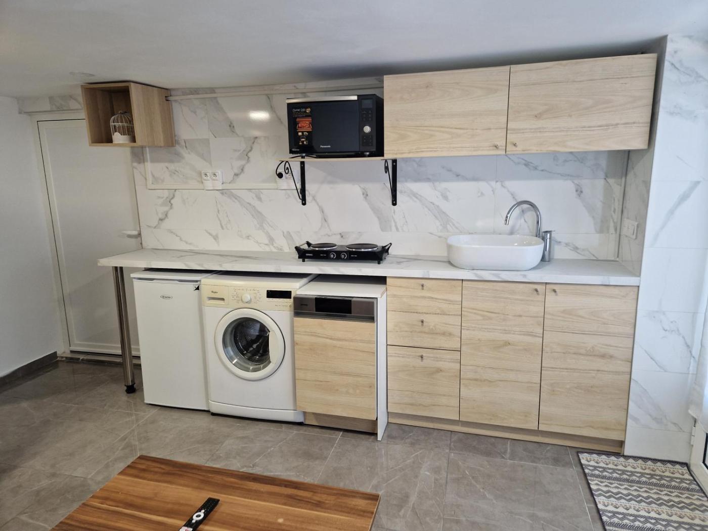 Cet appartement possède 1 chambre, une télévision à écran plat, une cuisine équipée avec un réfrigérateur et un lave-vaisselle, un lave-linge, ainsi que 1 salle de bains avec une douche.
