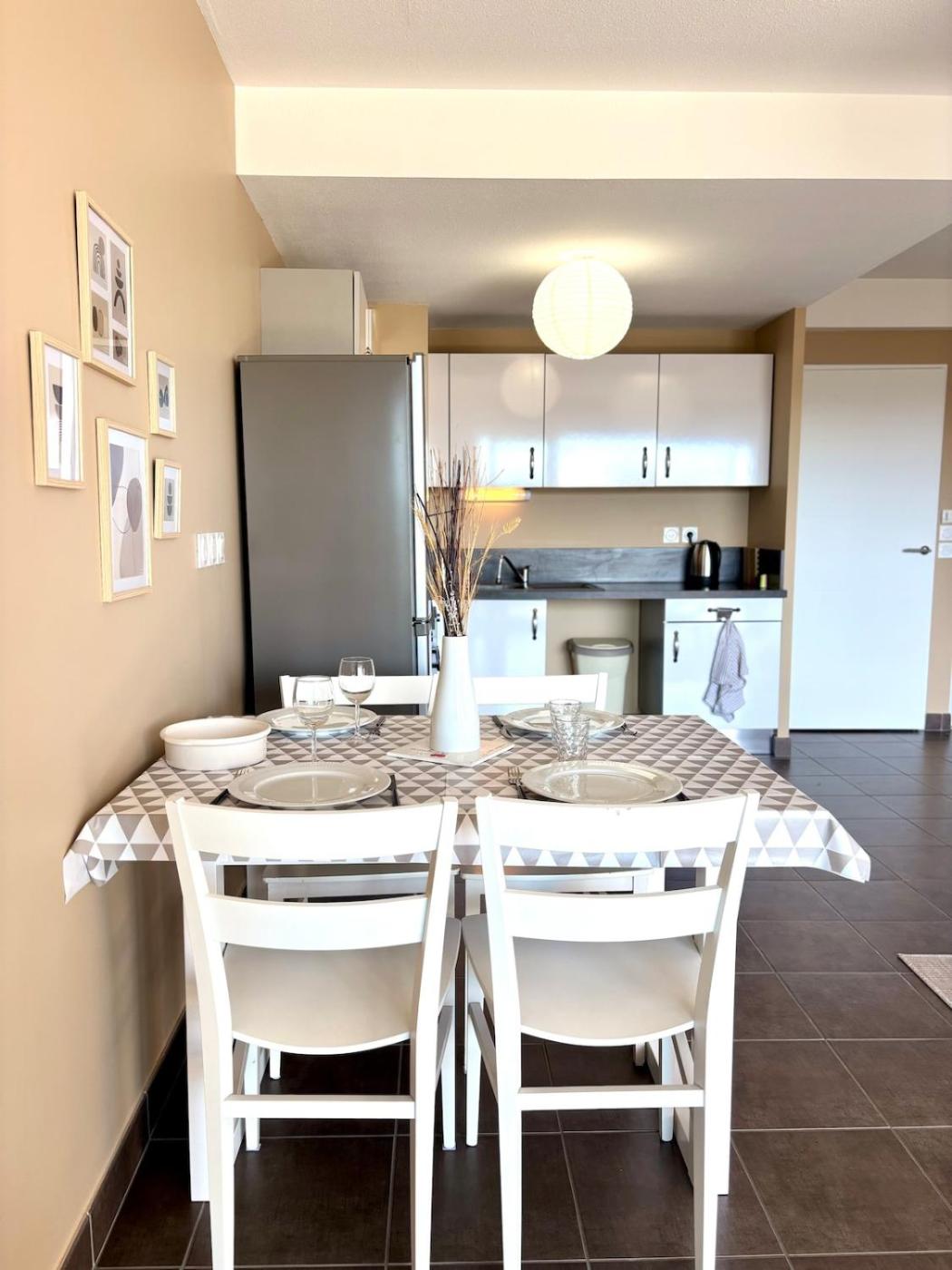 Appartement 2 Chambres. Featuring 2 bedrooms and 1 bathroom with a bath, this spacious apartment offers a well-fitted kitchen and a terrace. Guests can make meals in the kitchen that is fitted with a stovetop, a refrigerator, a dishwasher and kitchenware. The apartment offers a flat-screen TV with streaming services, a washing machine, a tea and coffee maker, a dining area as well as garden views. The unit has 3 beds.