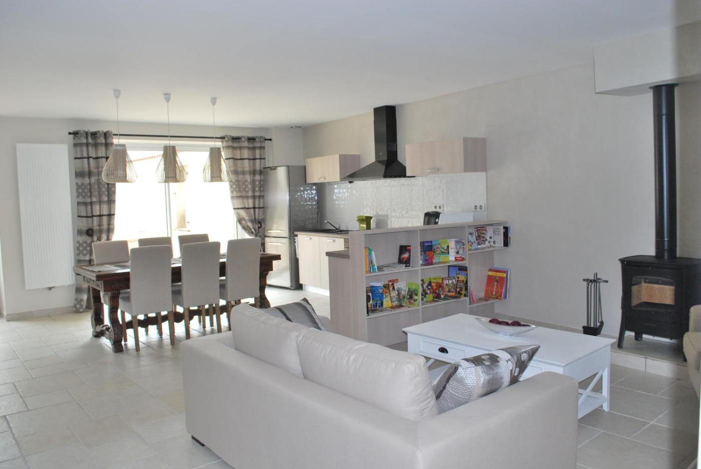 Chambre Familiale avec Salle de Bains Privative. The well-fitted kitchen features a stovetop, a refrigerator, a dishwasher and kitchenware. The spacious family room offers a tea and coffee maker, a seating area, a terrace with garden views as well as a private bathroom featuring a shower. The unit offers 4 beds.